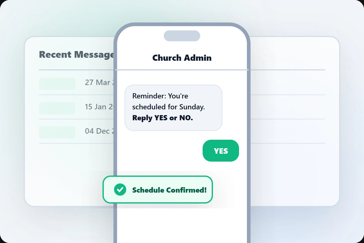 Drop the manual emails. Send automated, timely text notifications that allow your volunteers to confirm or decline with a quick reply.